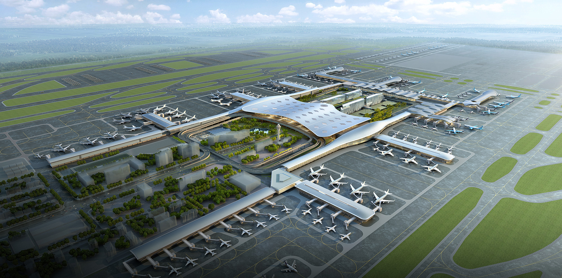 项目概况:项目位于杭州萧山国际机场内。总建筑面积约71万平方米,总投资约64亿元人民币。4层地下室,2~3层裙房,2栋10层旅客过夜用房,2栋9层配套业务用房,最大建筑高度44.5米。
