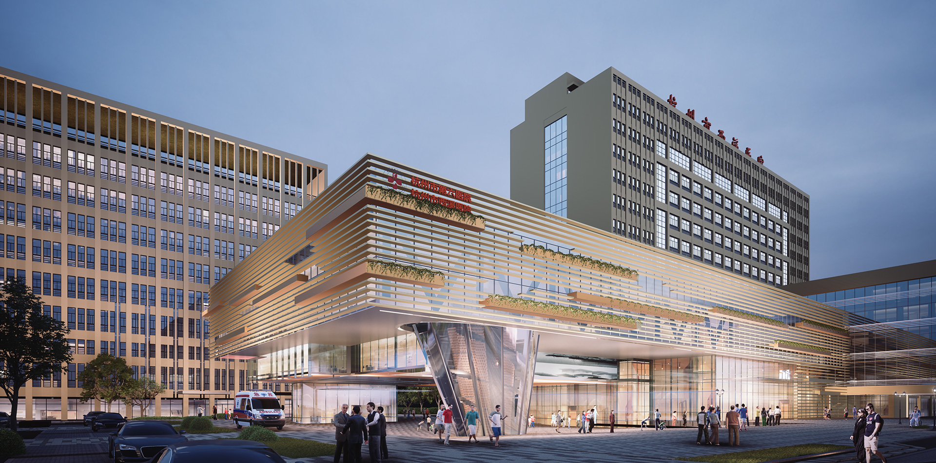 设计理念:“疗愈之园”,山谷丛林,围景造园,将建筑进行大尺度院落空间营造,不同层次空间充满阳光、风,景致形成静谧、忘我的疗愈空间,塑造充满温度,空间友好的人文医院;“筑台叠景”,结合地貌特征及周边山体景观,将场地进行多层次台地设计,形成层层叠叠的场地景观层。建筑因势而退,形成消隐的退台天际线,依于山谷、融入自然,营造大山景观中的生态医院。