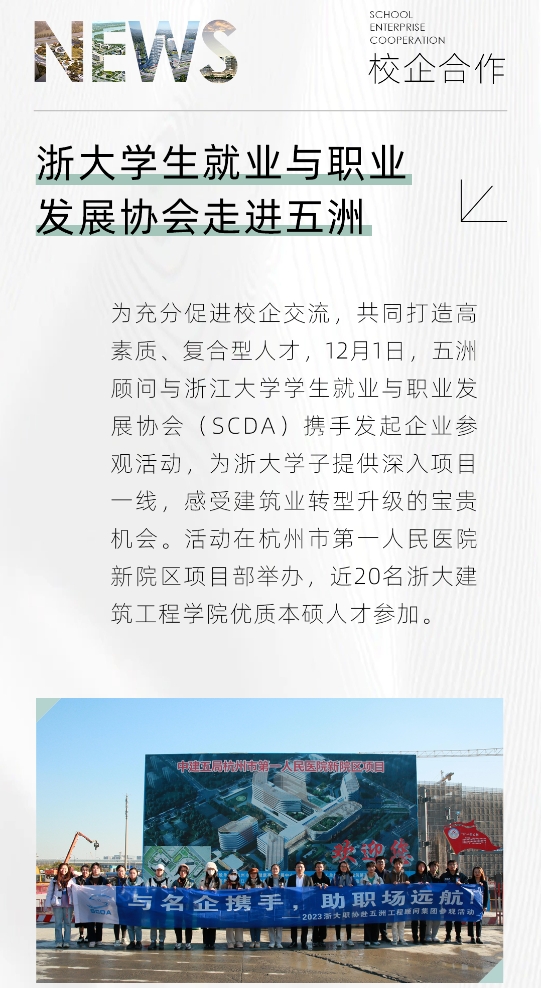 五洲顾问总经理助理、人力资源中心总经理黄益专对各位同学的到来表示热烈欢迎,并做企业情况介绍。他表示,五洲顾问积极顺应行业变革趋势,立足“政府智库、业主顾问”定位,打造高端咨询、创新监管模式,可为建筑从业人才提供更大平台。他强调,五洲始终将高素质创新人才作为驱动企业发展的核心要素,积极促进校企合作、人才共培,期待能与浙大共同探索合作新模式、新路径,持续为企业、行业高质量发展蓄势储能。