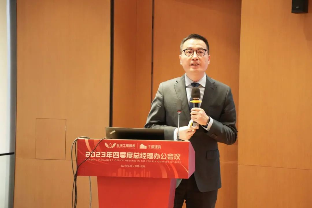 1月28日,五洲顾问·千城建筑2023年四季度总经理办公会议于杭顺利召开。集团董事长蒋廷令及全体高管出席会议,各职能机构、产品机构、区域机构的集团直管干部参加会议,部分异地干部通过远程视频参会。大家齐聚一堂,总结成绩、明确方向、部署计划、共话未来。