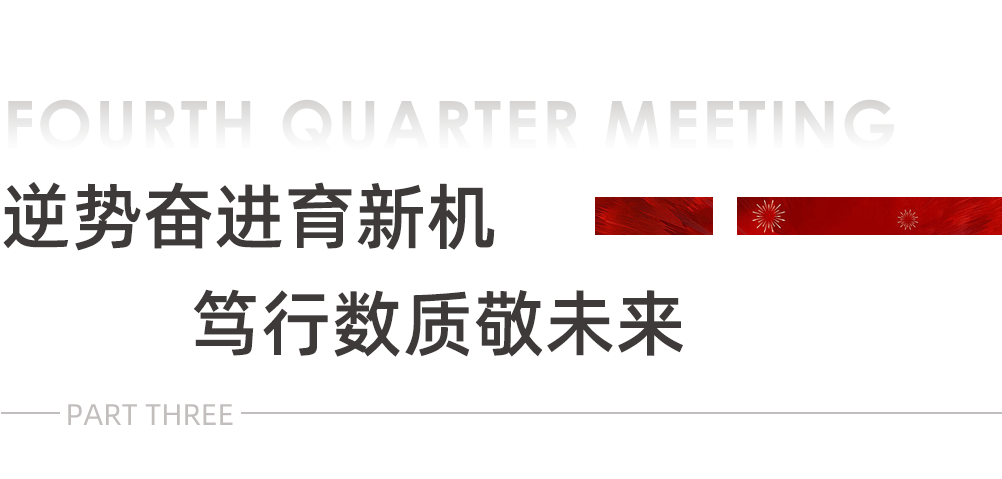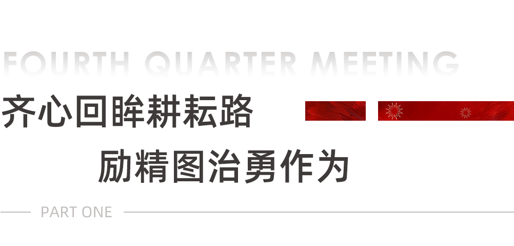 四季度会议是承前启后的枢纽,是上阶段的终结,也是下阶段的开端。会上,各单元负责人围绕年度目标考核责任书作述职汇报,以“述”亮绩找不足,以“评”促干明目标。与会高管听取了各单元汇报的情况,对目标差距给予回应与建议,并动员全体干部要秉承“一分部署,九分落实”的责任与担当,在全局中审视自身、在比较中找准差距,强化共识、群策群力,共同推进公司各项工作再上新台阶。
