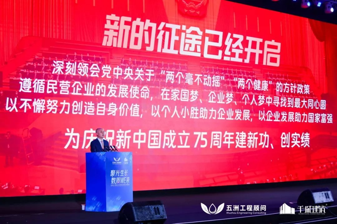 五洲工程顾问集团执行总经理、千城建筑总裁董永贤围绕“聚光”“生长”“数质”“WE来”四个关键词分享并展望。他表示,身处行业变革期,五洲当以价值匹配和企业文化为驱动力,凝聚微光照亮前路;以创新求变和持续生长为核心,焕新企业发展活力;以数智转型和品质打造为抓手,擦亮五洲金字招牌。他期待,全体五洲千城人聚沙成塔、积水成渊,步伐坚定共向愿景目标迈进,奔赴未来!