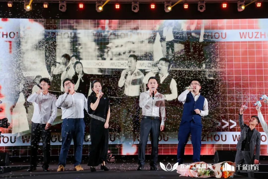 ▲全体高管与演职人员合唱企业歌《五洲人》